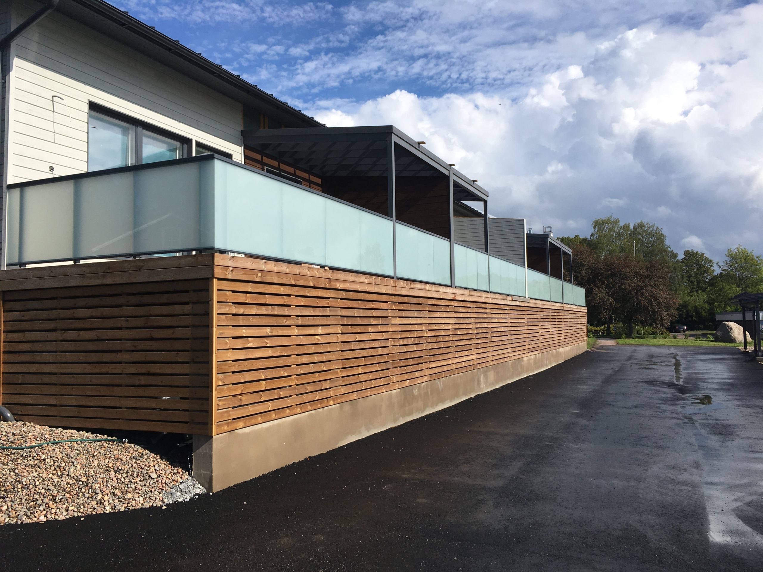 Parainen Söderbynmäki IIKaiteet ja kaidelasit, Rivitalot / 10.8.2019 KOHDE: As Oy Söderbynmäki II, Parainen TUOTTEET: Kaiteet, kaidelasit