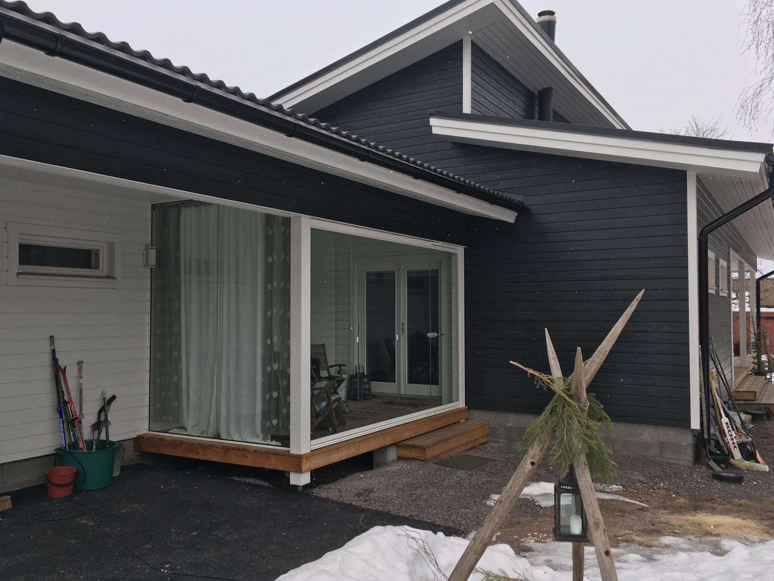 Terassilaseilla esteetön näkymäOmakotitalot - omakotitalojen lasitukset, Terassilasit - katso kuvia toteutuneista terassilasiprojekteista / 15.2.2019 KOHDE: Omakotitalo Littoinen TUOTE: Terassilasit. Terassin etupuolen lukittava ovi aukeaa ulospäin. Päädyssä oleva ovi aukeaa sisällepäin.